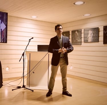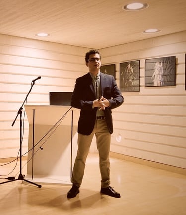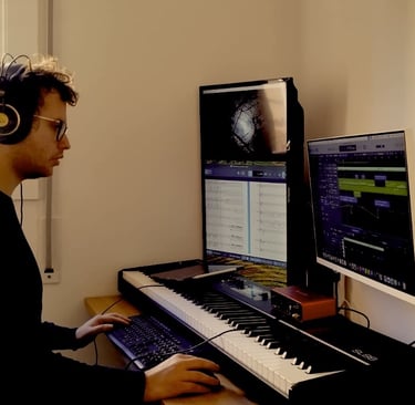 His creative work includes concert music, scoring for short films, orchestration, score editing for cinema and participation in international programs such as the IMCC (France), the GEMS Film Scoring Program and the HARMA HUB Students Week (Budapest, 2024). He has also presented conference papers and publications on early Iberian music.